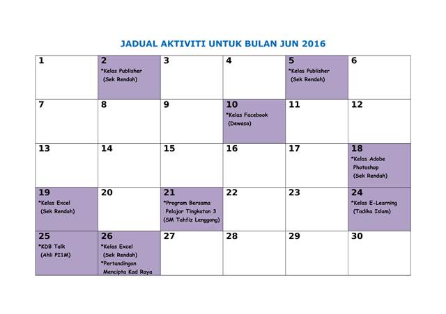 Jadual Aktiviti Jun