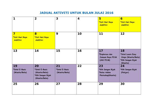 Jadual Aktiviti Julai