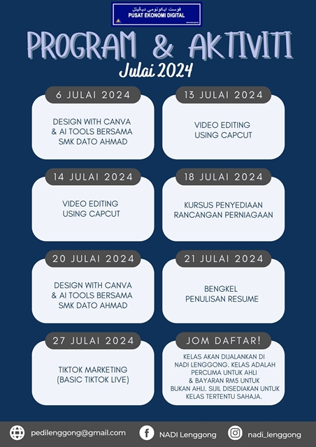 Jadual Aktiviti Bulan Julai 2024
