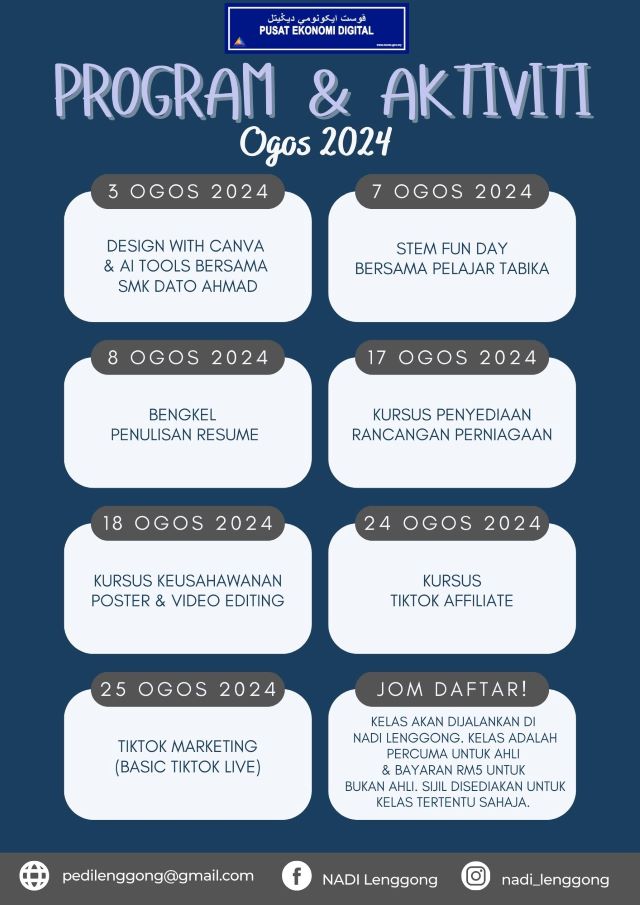 Jadual Aktiviti Bulan Ogos 2024
