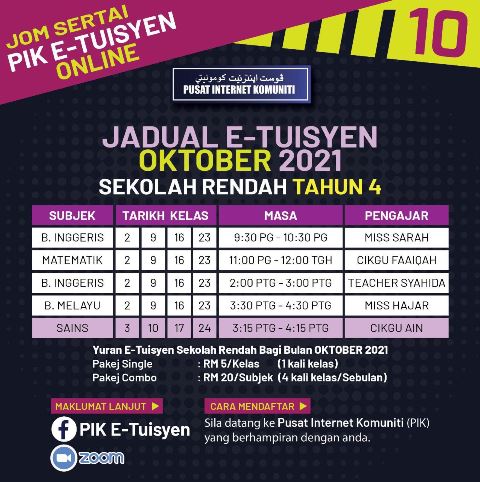Jadual E-Tuisyen Bulan Oktober 2021