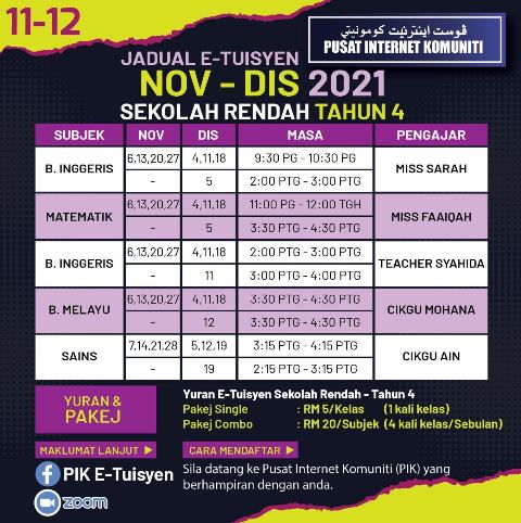 Jadual E-Tuisyen Bulan November – Disember 2021