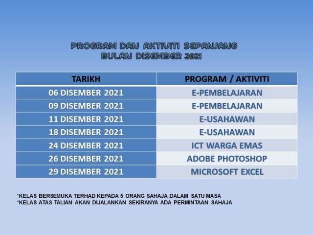 Jadual Aktiviti Bulan Disember 2021