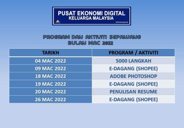 Jadual Aktiviti Bulan Mac 2022