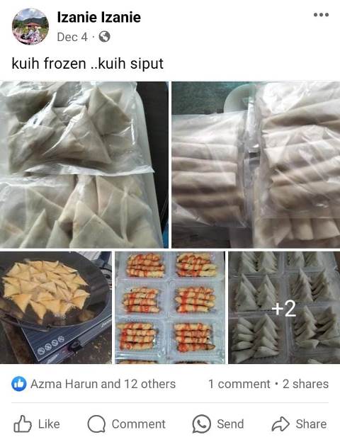 Puan Sarimah merupakan usahawan kecil-kecilan di Lenggong. Puan Sarimah menjual pelbagai jenis kuih frozen seperti karipap dan donut. Beliaujuga masih menerima tempahan kuih siput untuk sebarang majlis.